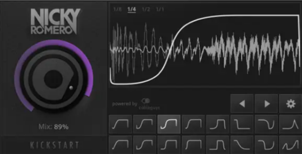Sidechain compression: no top-notch EDM, house or R&B production can do without. Kickstart is the fastest way to get that signature sidechain effect in your own tracks. Nicky Romero and Cableguys got it all laid out for you. Forget complicated compressor routings, simply drop Kickstart on your channels—a big Mix control and hand-crafted modulation curves get you started. You can use Kickstart in any VST or AU sequencer such as Ableton Live, Logic, Cubase, Fruity Loops, etc