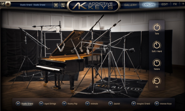 Addictive Keys ships with tons of inspiring presets neatly arranged in ExploreMaps. Each preset even comes with previews that present the preset in the perfect light. If you’re in a hurry, you can use presets as-is so you don’t lose inspiration. If you’re in the mood to design new sounds, the powerful sound engine gives you great control over each instrument. You can even mix and match microphone setups!