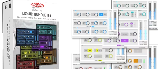 Liquid Bundle III is a thoughtfully curated collection of Nomad Factory’s beloved Liquid Series plugins—modernized for today’s production environments while preserving their warm, vintage sound. Combining a classic compressor, gate, delay, modulation, phaser, and reverb, this bundle gives you a full suite of essential tools to shape, enhance, and polish your mixes with timeless character