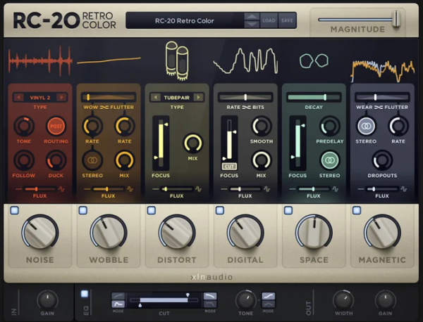 XLN Audio’s RC-20 Retro Color is a creative effect plugin that adds life and texture to any recording. It easily recreates the warm, cozy feeling of vintage recording equipment, but also works perfectly in any modern production setting.