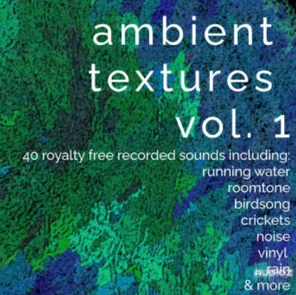 24 Bit WAV samples, including birdsong, creek, computer fan, dishwasher, crickets, organic textures, rain, roomtone, sculpted noise, shower, storm drain, electrical interference, vinyl & more
