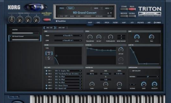 The TRITON Extreme is the most powerful model in the series, featuring the first-ever “Valve Force” vacuum tubes in a music workstation, and most of the new PCM and EXB-PCM series waveforms. The powerful, analog-like sound of vacuum tubes can be used with software for incredible sonic performance. (TRITON Extreme is included in the KORG Collection – TRITON.)