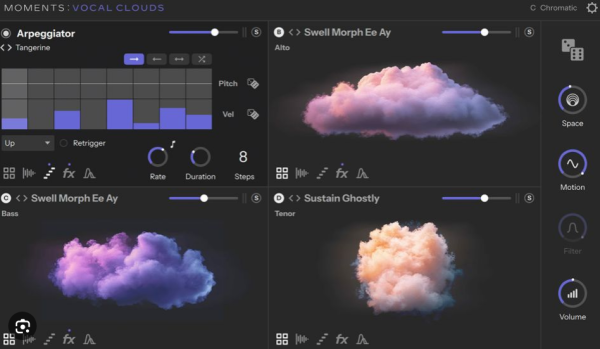 Hold a chord and hear it breathe. Moments: Vocal Clouds unfolds voices into shifting textures that move and bloom over time. Four independent layers let you shape immersive, rhythmic vocal landscapes from the simplest input. From gentle whispers to vast cinematic swells, you can create evolving soundscapes that feel alive, emotive, and uniquely yours.