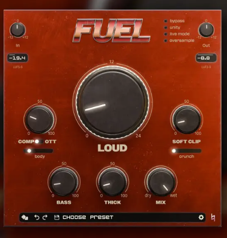 Fuel 专为那些寻求重低音、流畅的动态和强大限制效果的用户而设计。该插件具有与母带处理插件 Master Plan 相同的无与伦比的最大化算法。低延迟模式具有高性能的实时跟踪能力。此外,还有源自经典 Trap 的软削波和失真功能、水晶般清晰的压缩、OTT 多频段和向上压缩、高能量的饱和处理,以及精心打造的预设和随机化处理。