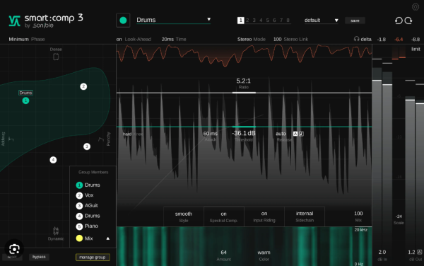 Group Mode, zero-latency compression, Spectral Ducking, …