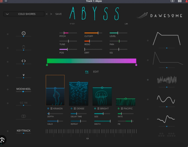 Abyss is a visual synthesiser with character and a bit of fairy dust. It brings to you dark, vibrating drones, vivid cinematic pads and rich evolving textures. With Abyss you find instant inspiration for your music and sound design projects.