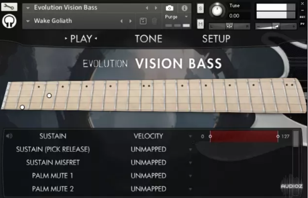 这令人难以置信的音色范围得益于我们所采样的高性能五弦电贝斯。其独特的多弦长设计,配以引人注目的斜品丝阵列,意味着低音弦的实际长度明显长于高音弦,从而在指板的任何把位都能实现出色的清晰度和一致性。这把贝斯还拥有巨大的动态范围,既能柔和细腻地演奏,也能随时为您的曲目注入舞台般的能量。在其最大动态下,有丰富的冲击感和颤音供失真效果使用,同时,低音弦的超长弦长为延音的稳定性和极低音的音准清晰度提供了保障。