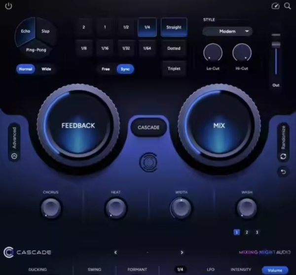 🌊 LFO 低频振荡器:在内置的 Volume 音量、Lo-Cut 低切或 Hi-Cut 高切上使用,直接在 Cascade 中添加富有音乐感的动态。