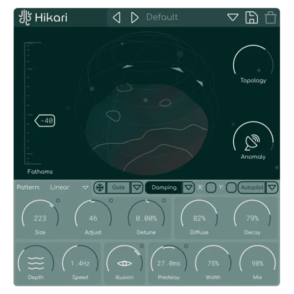 Hikari通过数字技术重建模拟了非常规硬件混响器,并融入大量创新设计,创造出非传统的声音效果。Hikari是一款以海洋为主题的随机混响器,结合其独有的导航与异常系统,移动至不同位置时,混响会根据水下地形拓扑结构产生差异化响应,专为声音探索而设计。
