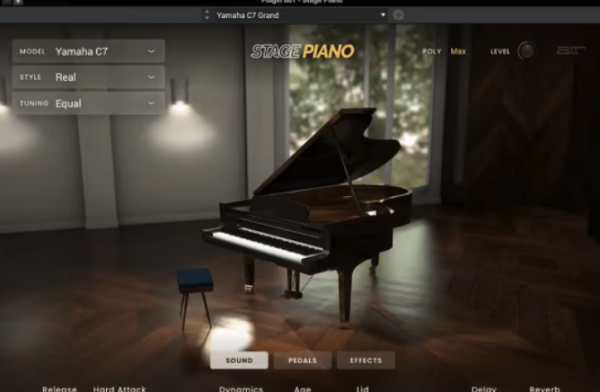AIR Music Technology Stage Piano是一款虚拟乐器插件,模拟了各种世界顶级钢琴的音色,包括Yamaha C7、Steinway D和AIR自己的Workstation等。它提供多层样本,可以真实地捕捉到钢琴的动态、老化、释放和盖子控制,让使用者可以轻松地调整和创造不同的钢琴音色.
